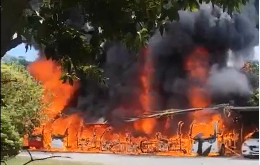 Video: Hiện trường đám cháy thiêu rụi 9 xe điện du lịch ở Chùa Hương Tích (Hà Tĩnh). (Nguồn: MXH)