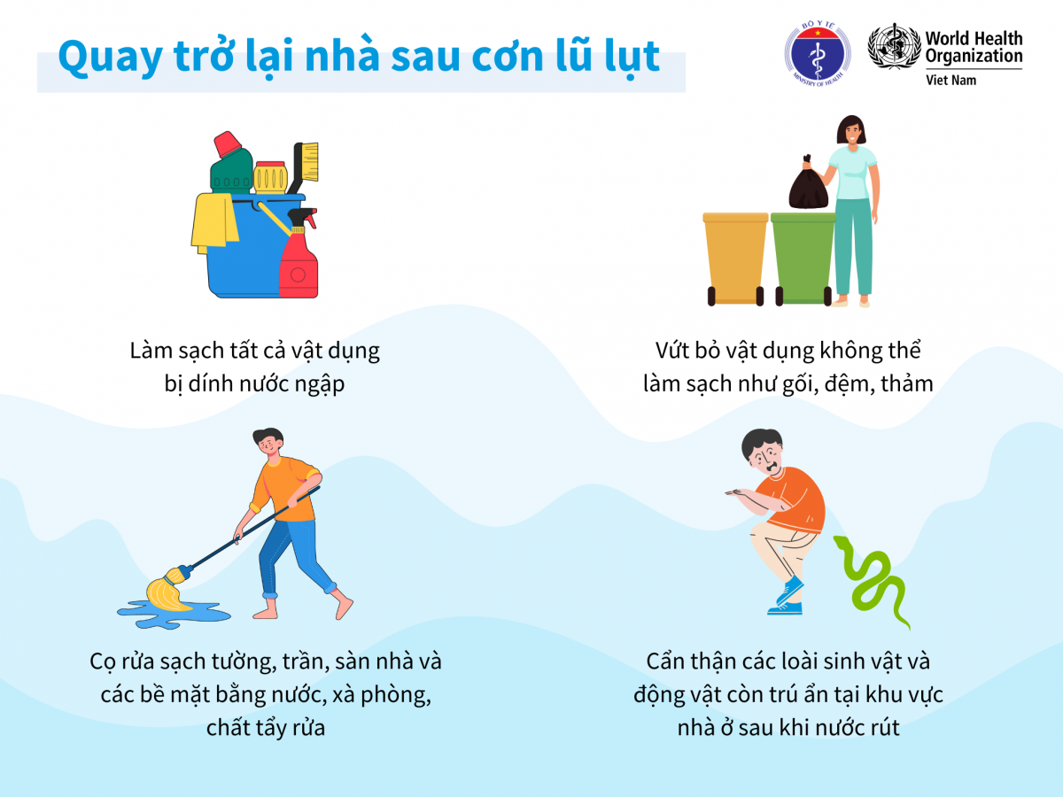 | Lời khuyên y tế khi xảy ra lũ lụt. Nguồn: Bộ Y tế |