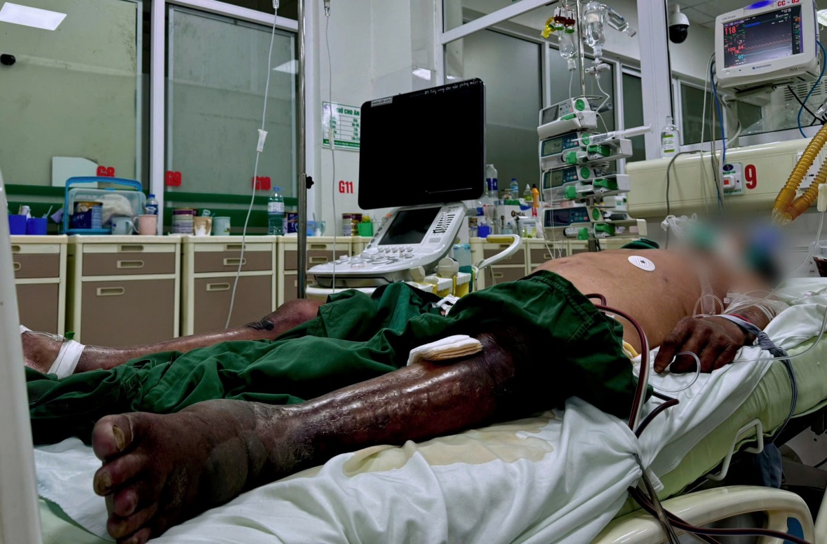Ban đầu chỉ là một vết thương nhỏ, nhưng sau vài ngày không được xử lý đúng cách, tình trạng của ông T. nhanh chóng trở nặng với các triệu chứng phù nề, bóng nước lan rộng. Khi nhập viện, ông đã bị sốc nhiễm khuẩn, suy đa tạng, hoại tử sâu ở chân trái với tốc độ tiến triển rất nhanh.